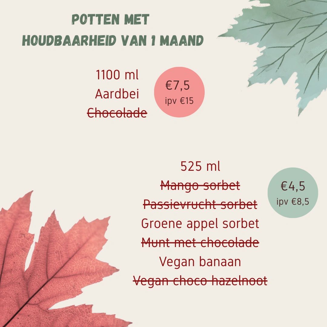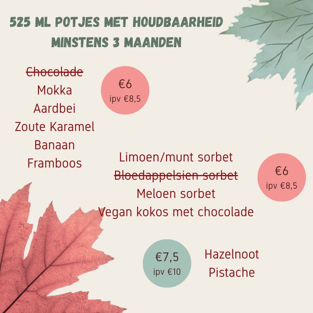 In de herfst en winter enkel basissmaken in 1100 ml op bestelling te verkrijgen.